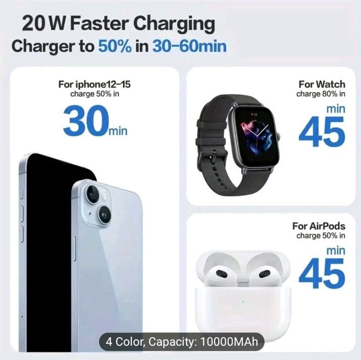 New 3 IN 1 100000mAh Wireless Charger Charging for iPhones Airpods iWatch 20W