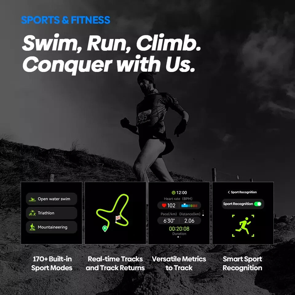 This smartwatch is the perfect accessory for any sporty individual. With built-in GPS, compass, and barometric altimeter, it can track your activities and provide you with accurate measurements. The watch has a round AMOLED screen with a resolution of 466*466 pixels and a display size of 1.43''. It comes in a sporty style and is compatible with all devices.