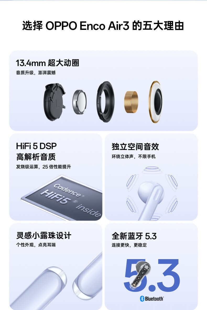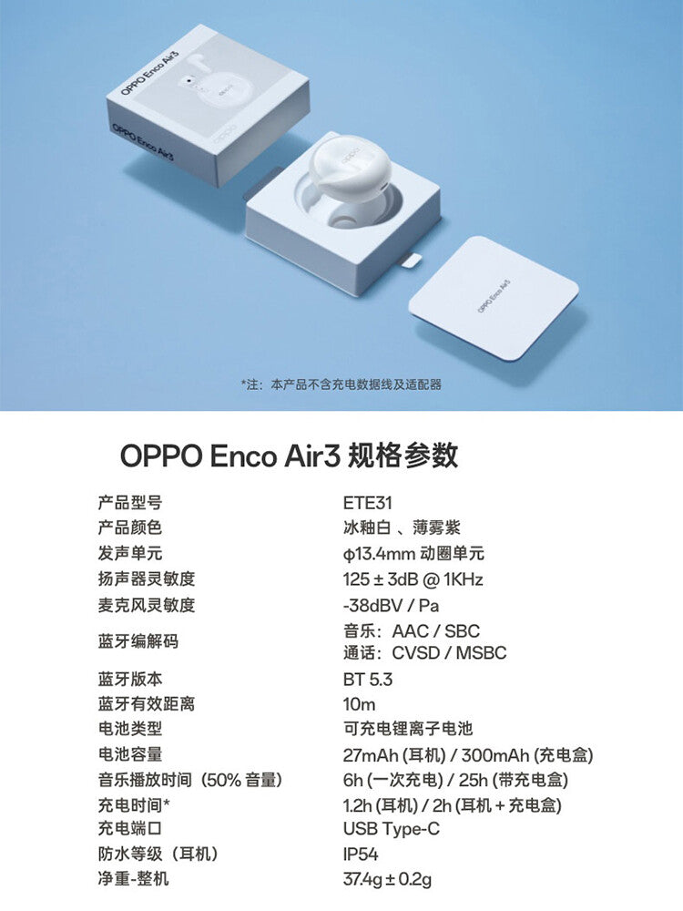 OPPO Enco Air 3 Half-in-ear earbuds headphones Customised pop-ups IP54 BT5.3