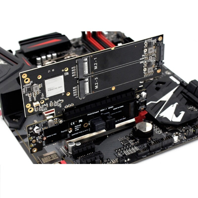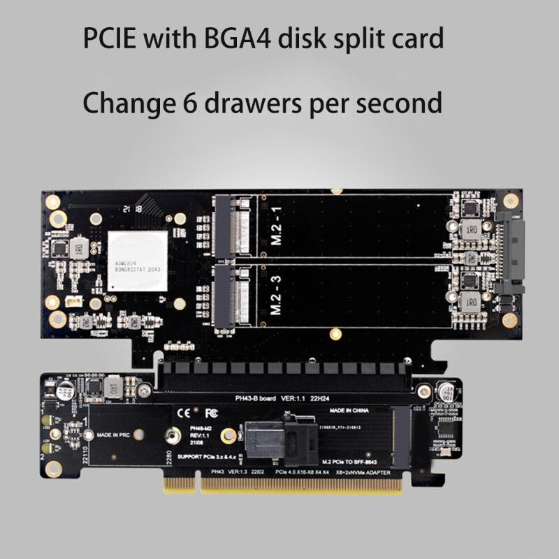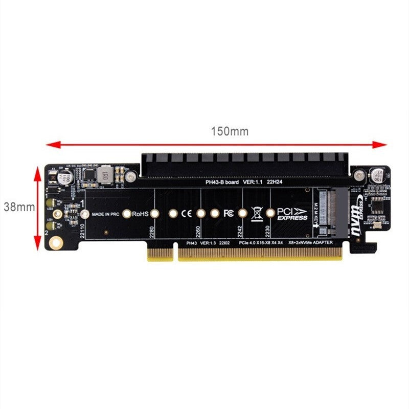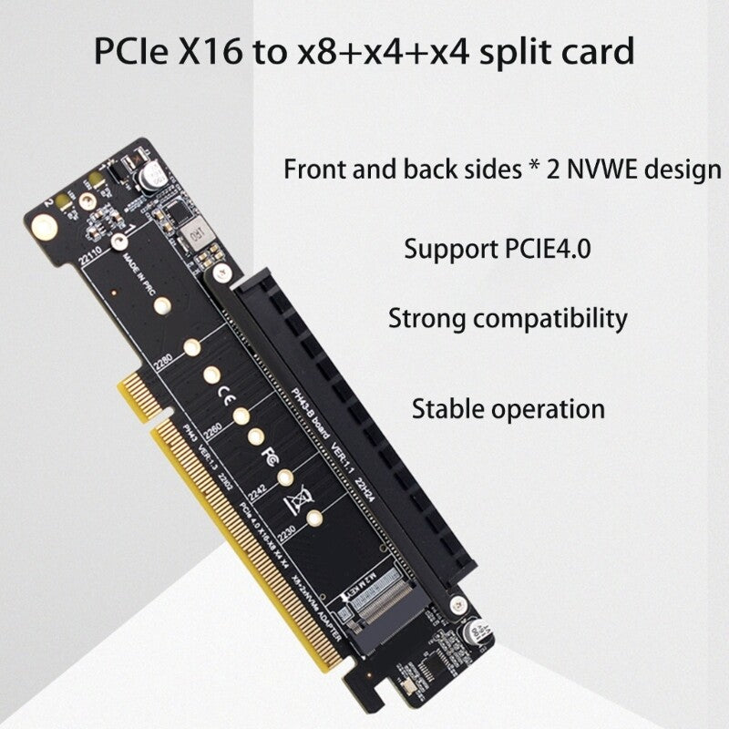 PCIE 4.0 X16 to X8+X4+X4 Splitter Adapter PCIe to 2x M.2 NVME SSD Expansion Card
