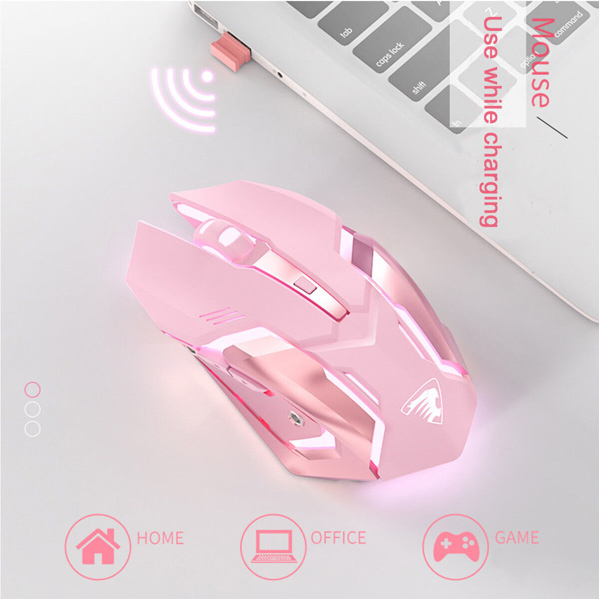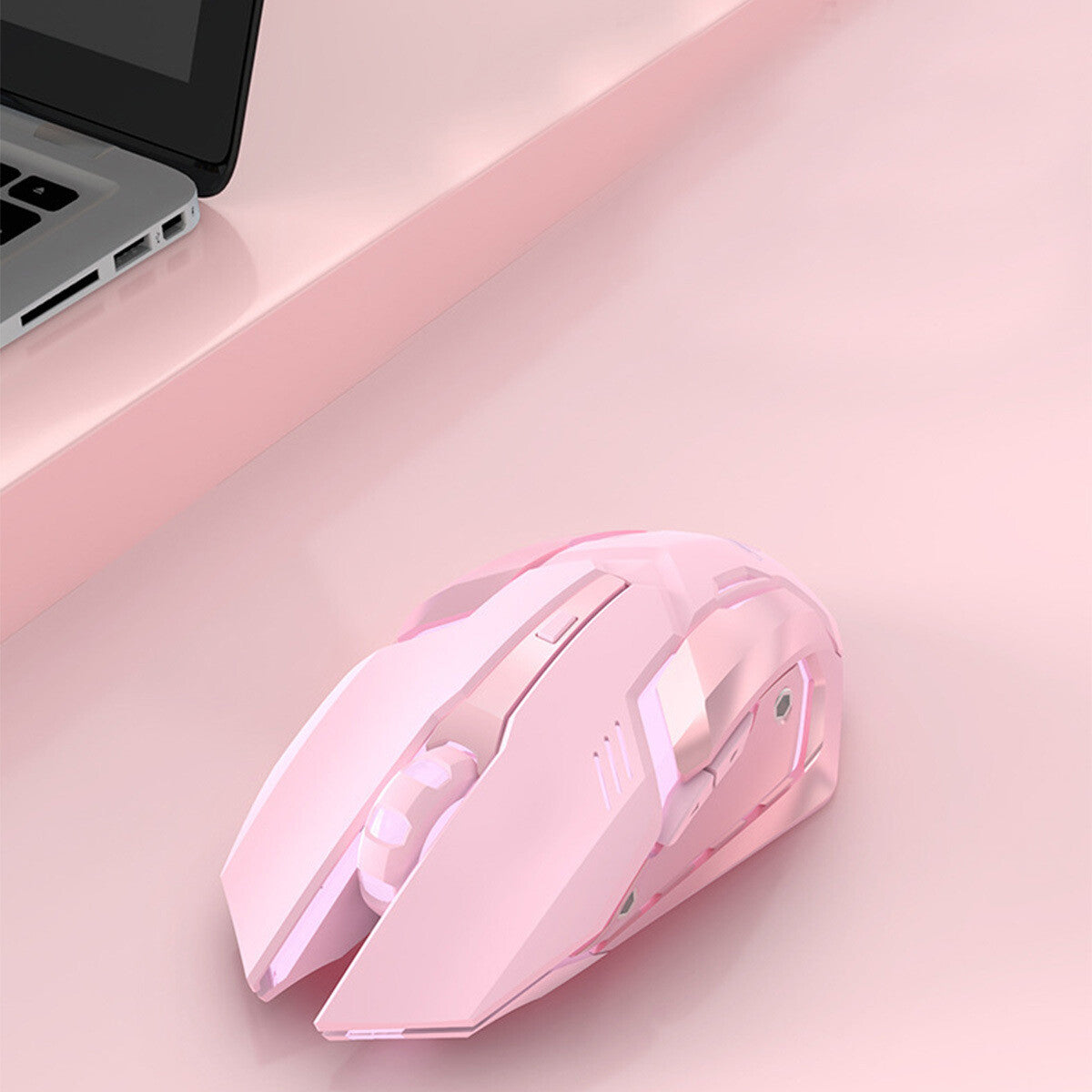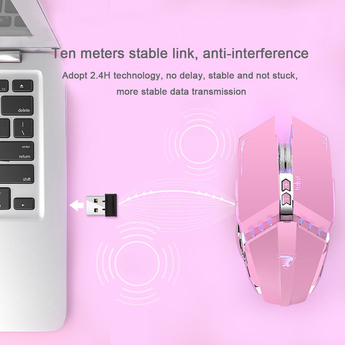 Pink Girl Wireless Mouse LED Braided Cable Adjustable 1600DPI for PC Laptop