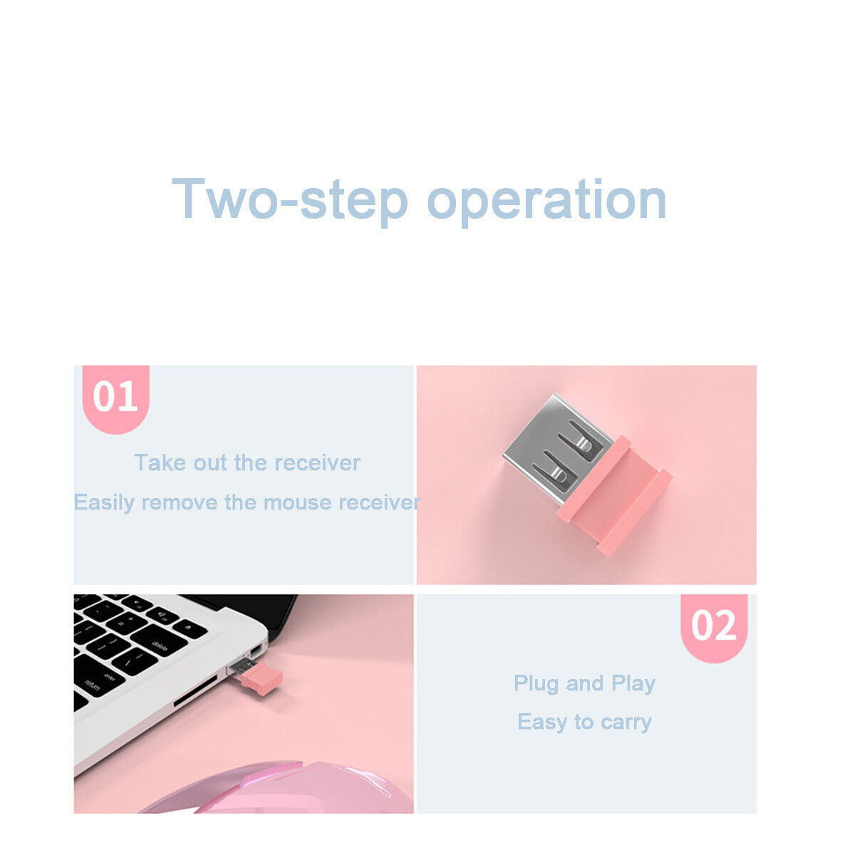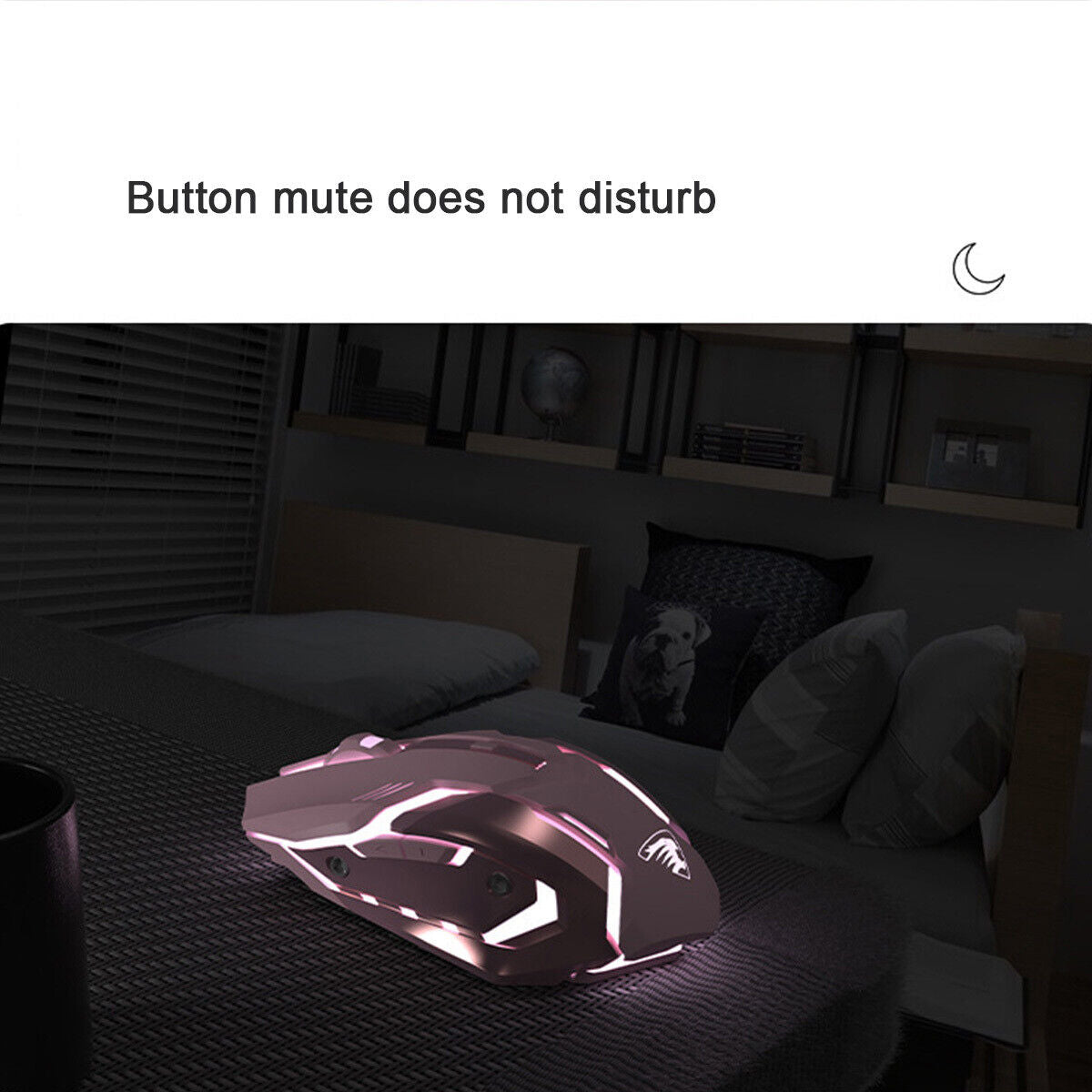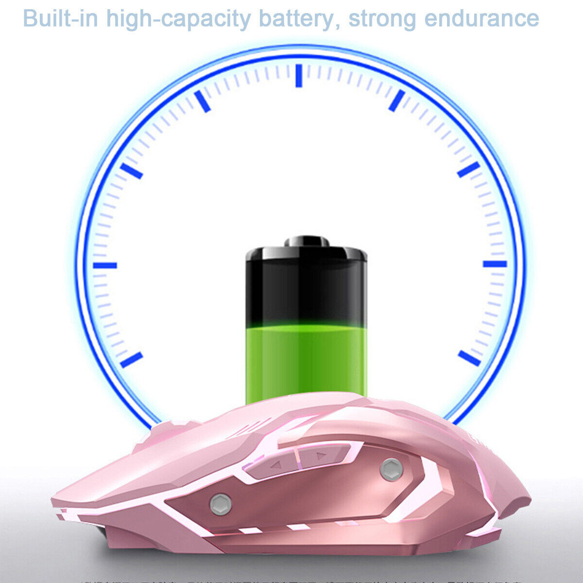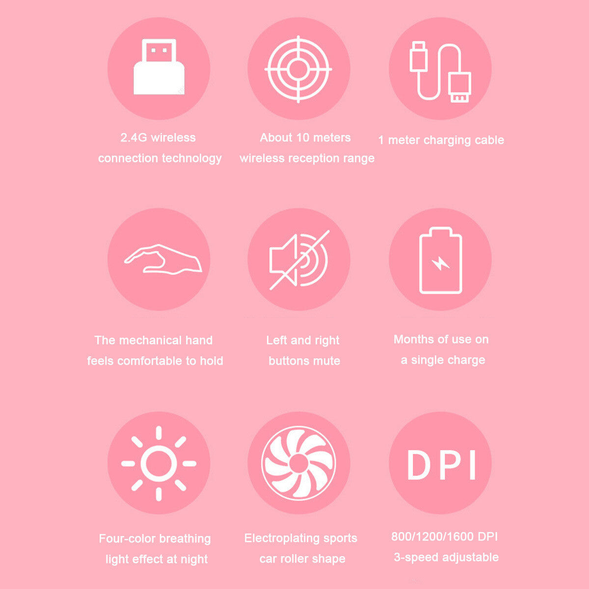 Pink Girl Wireless Mouse LED Braided Cable Adjustable 1600DPI for PC Laptop