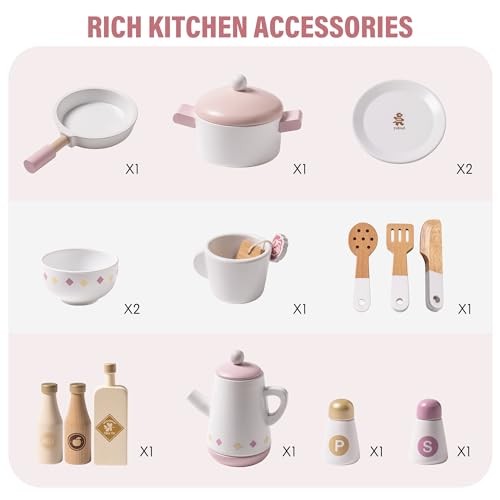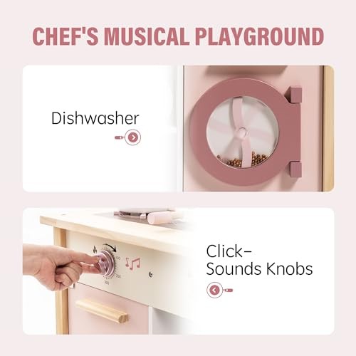 Play Kitchen for Kids Toddlers, Wooden Play Kitchen with Realistic Pink