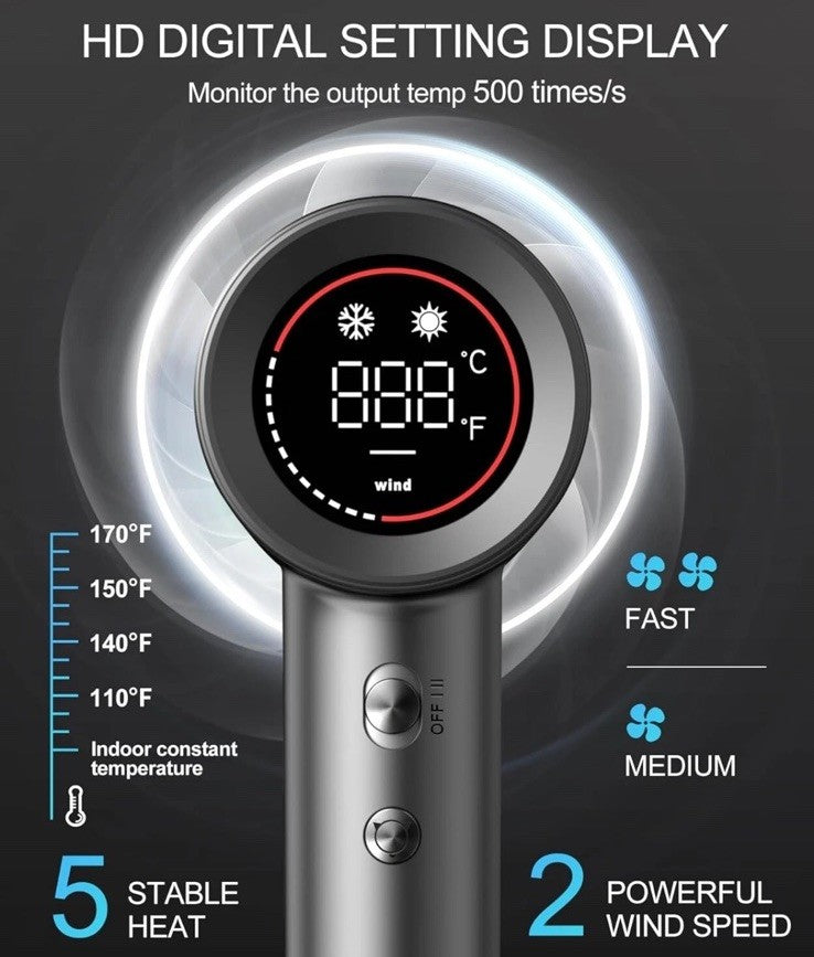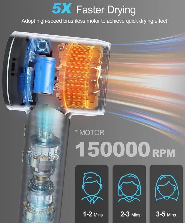 Professional High-Speed Blow Dryer, 150000 RPM, Negative Ion Technology