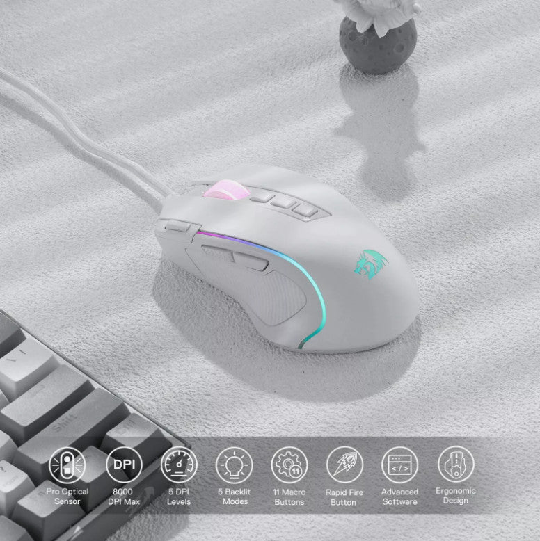 Redragon M612 Predator RGB Gaming Mouse, 8000 DPI Wired Optical, 11