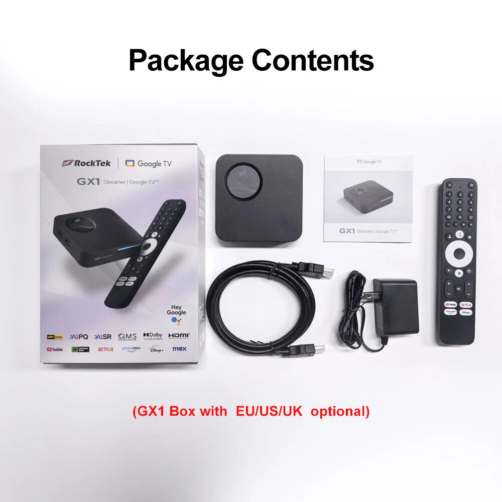 RockTek GX1 UHD Google TV 4GB 32GB Realtek1325 Dolby Atmos 2T2R Wifi6 BT5.2