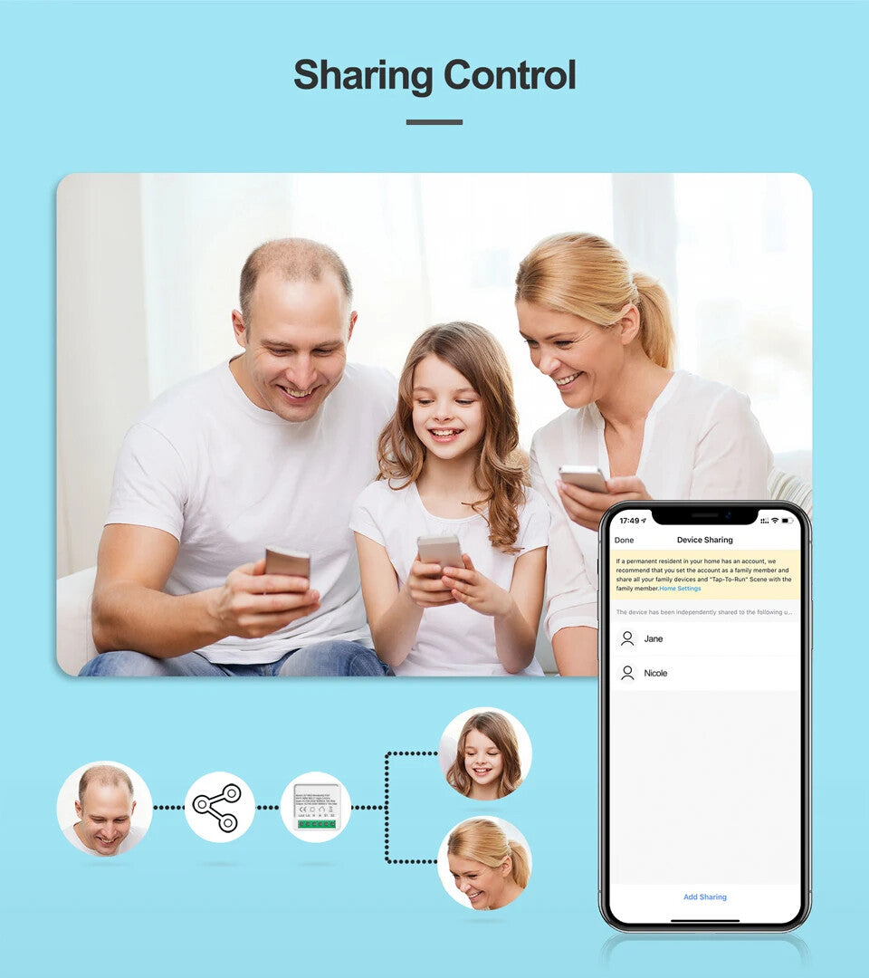One mobile phone can control multiple switches, and one switch can be controlled by multiple mobile phones at the same time;