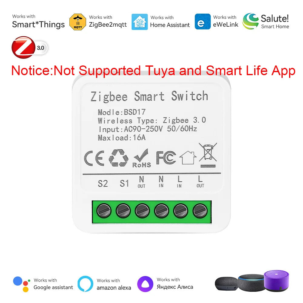 Tuya Smart Home ZigBee WiFi Smart Switch with Power Monitor 16A Mini Breaker Voice Control for Homekit Siri Alexa Google Alice