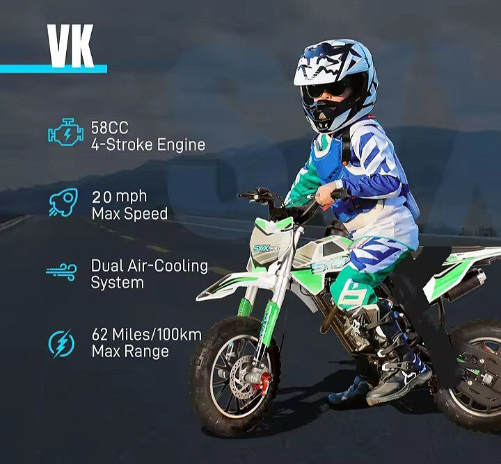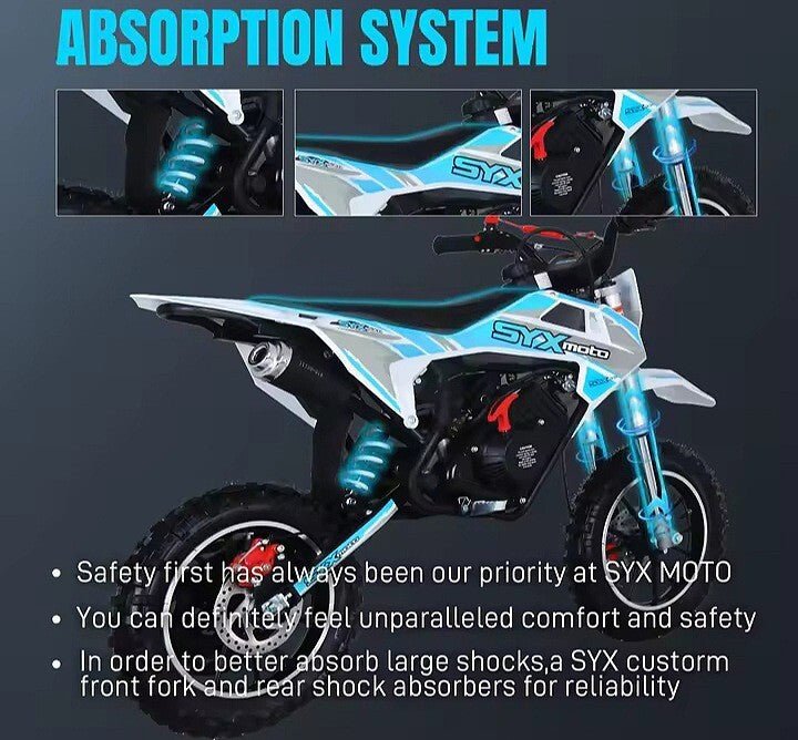 SYX MOTO 58cc Dirt Bike for Kids 4-Stroke Gas Powered Mini Pit Bike- BLUE