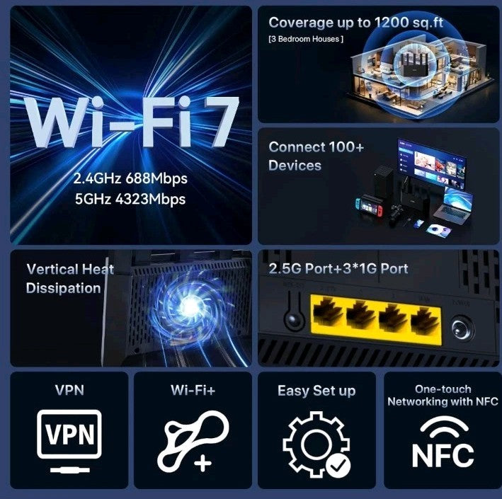 Tenda BE5100 Wi-Fi 7 Router – Dual Band Gigabit for Wireless Internet
