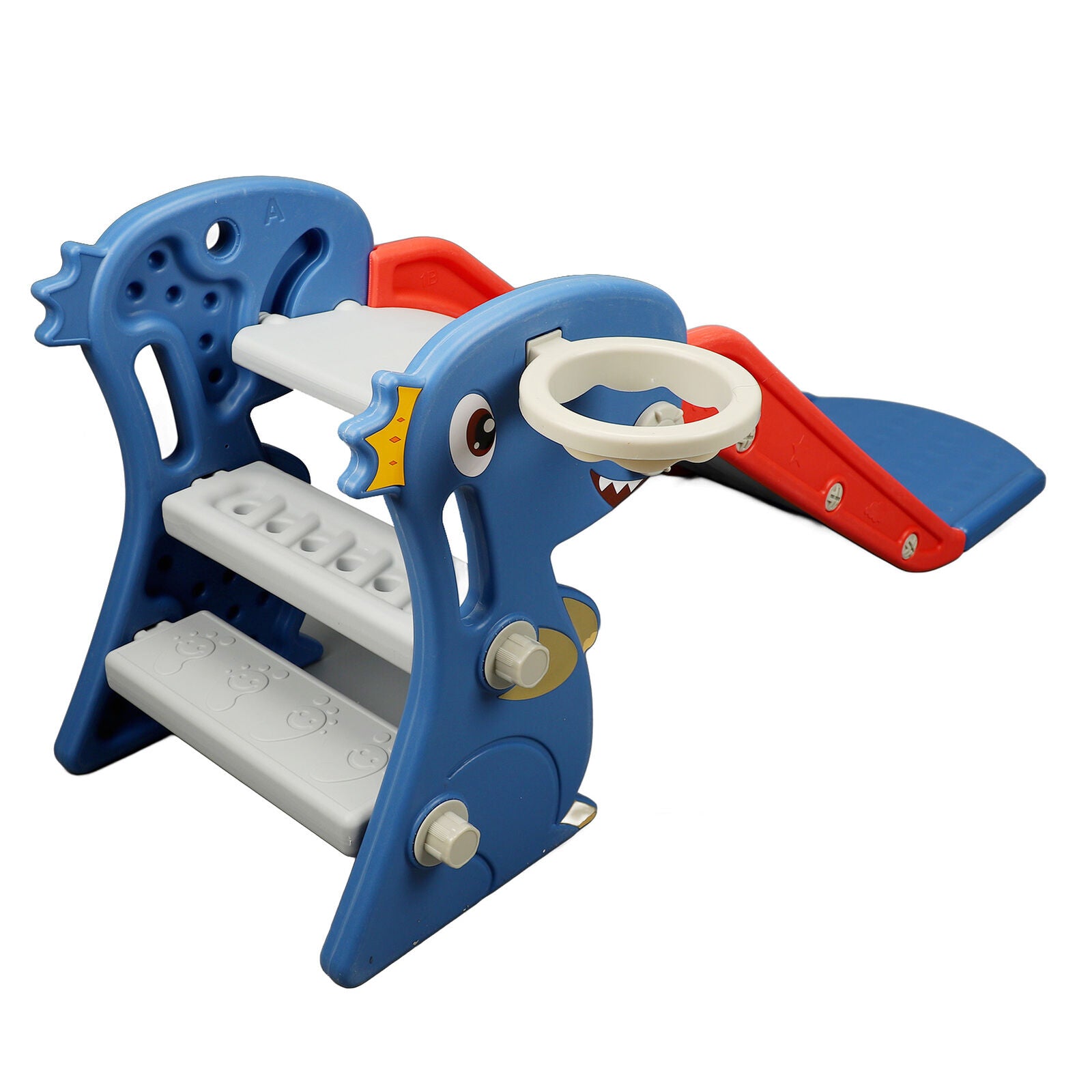 Toddler Indoor Slide for Age 0 To 3 Dinosaur Foldable Slide with Basketball Hoop