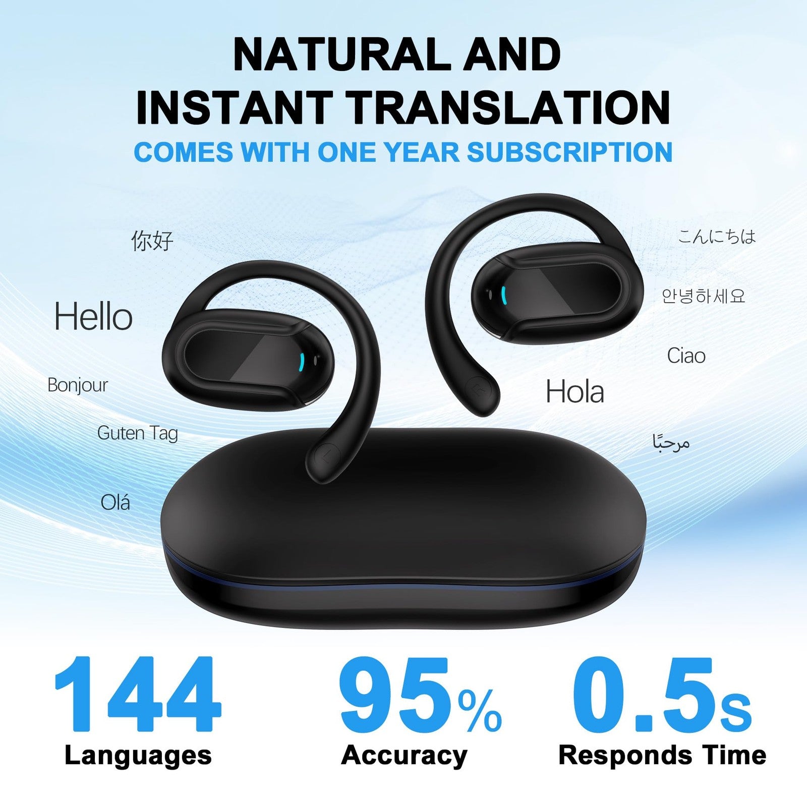 Translation Earbuds Real Time,Ai Language Translation Headphones,Open-Ear Tra...