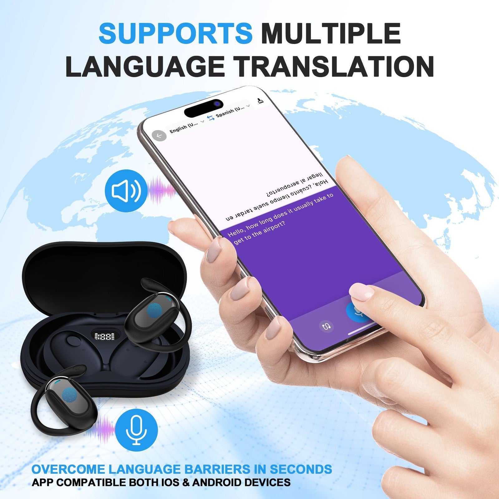 Experience seamless global communication with Translation Earbuds. Boost communication efficiency. Easily switch translation modes for seamless communication anywhere.