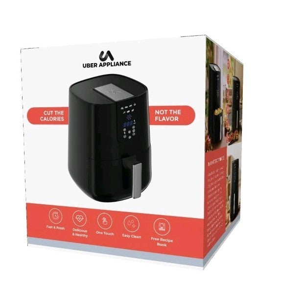 The Uber Appliance Air fryer XL Deluxe is a powerful electric appliance with a 5 qt capacity, perfect for cooking your favorite foods with less oil. Made of aluminum and featuring a removable basket for easy cleaning, this air fryer has 7 settings/programs to suit your cooking needs. The sleek black design, along with its display and easy-to-use controls, make it a stylish and functional addition to any kitchen. With a manufacturer warranty of 1 year and a voltage of 110 V, this air fryer is reliable and efficient for all your cooking endeavors.