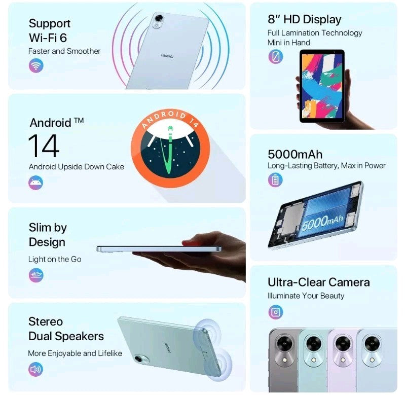 UMIDIGI G1 Tab Mini Android 14 Quad-Core 8" HD Display 3GB+32GB Wi-Fi 6 Tablet