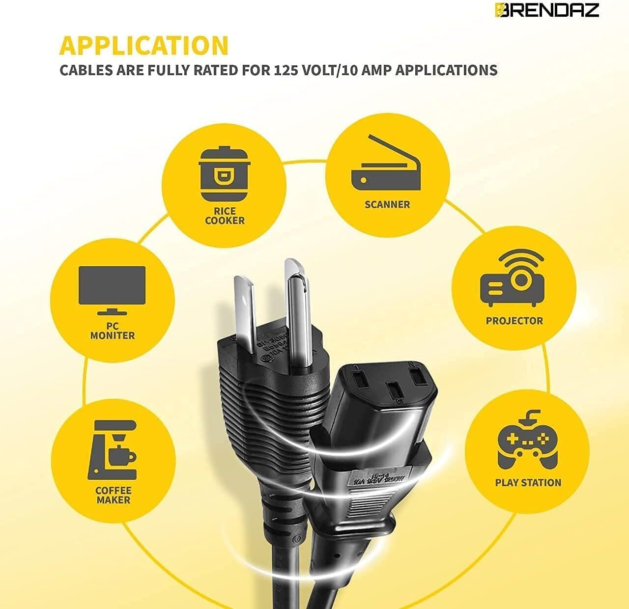 Pair with a computer and monitor to have matching cable lengths for a tidy installation. The female connector plugs directly into the PC, or TV Monitor while the male connector plugs into a standard outlet.