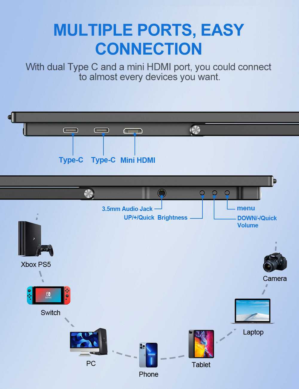 【Premium Material】Made of high classic aluminum alloy material making UPERFECT 18.5’’ monitor a durable and amazing product. UPERFECT 18.5" Portable Monitor. 1080P Full HD. Resolution: 1080P Full HD.