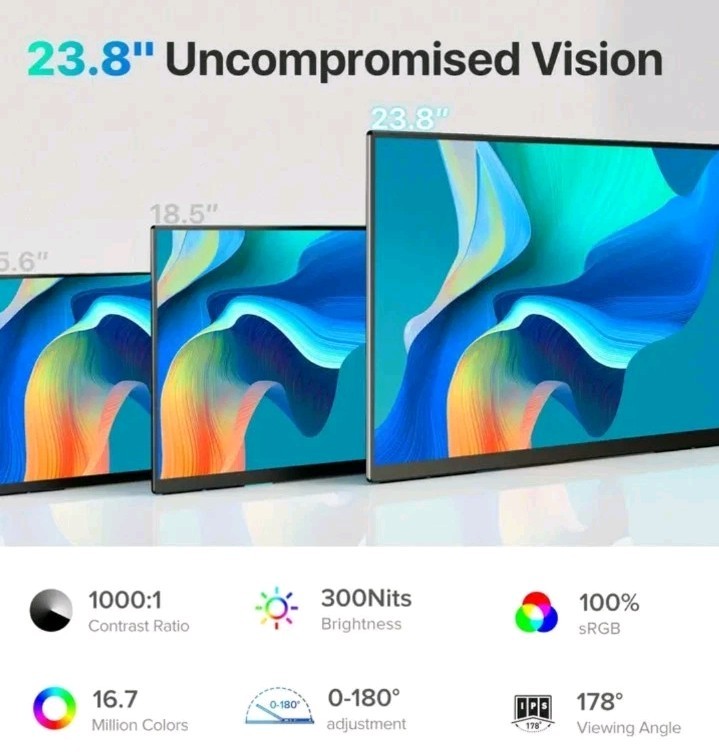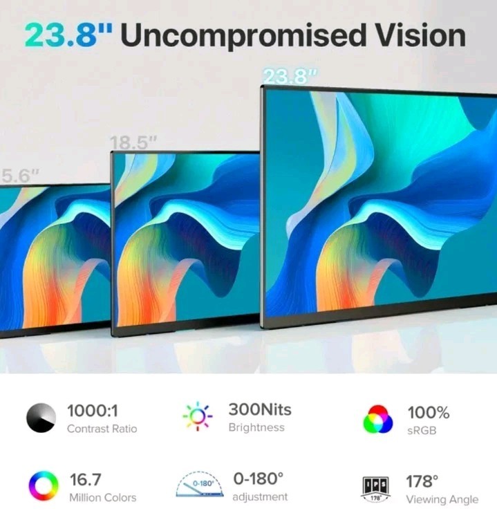 UPERFECT 23.8" Portable Monitor 120Hz Larger Screen 1080P FHD For Computer