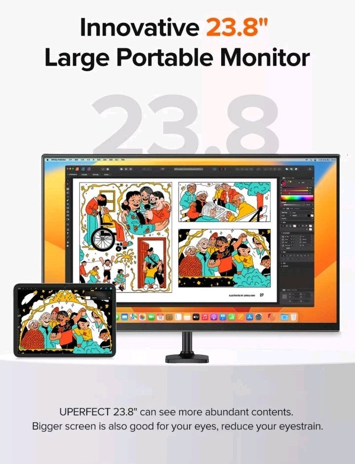 Used UPERFECT 23.8" Portable Monitor 100Hz Larger Screen 1080P FHD For Computer