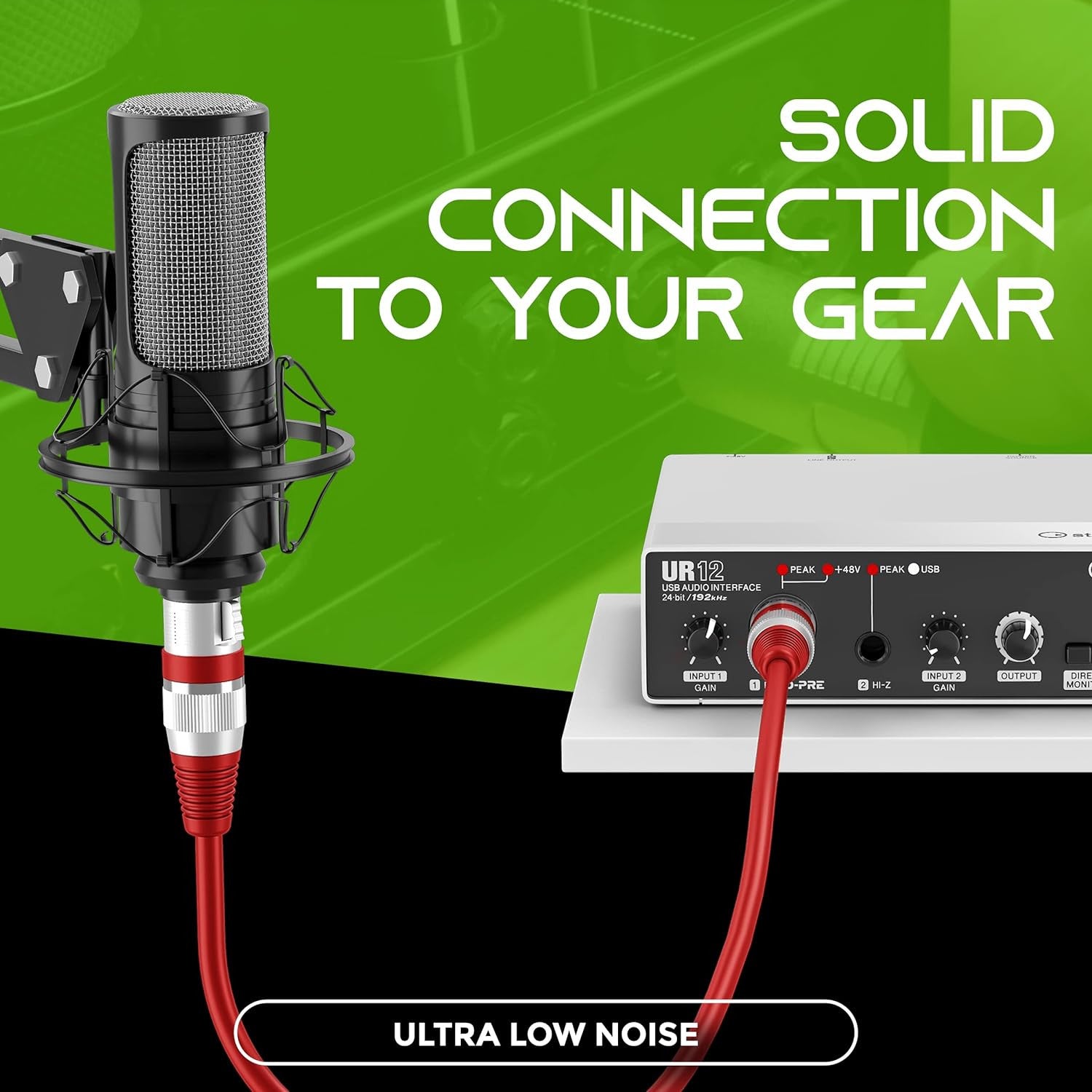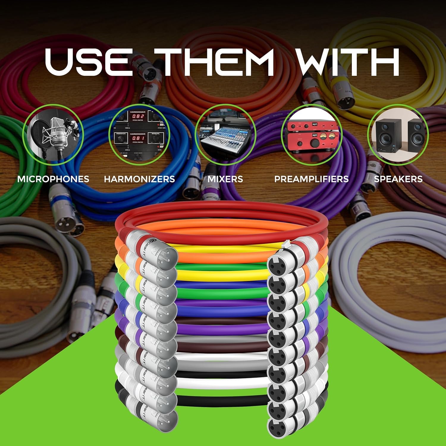 XLR to XLR Microphone Cable (6 Feet, 10 Pack) XLR Male to Female Mic Cable 3-Pin