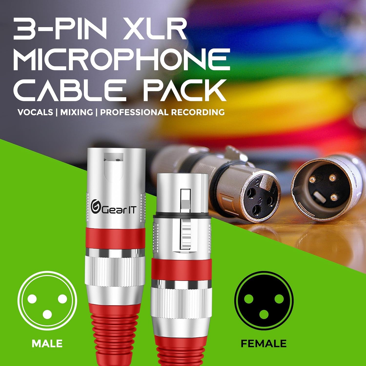 Various XLR cord lengths such as: 1.5 ft, 100 ft (30m), 150 ft (45m), 200 ft (61m). Search for GearIT XLR Cables to find all our XLR mic cables. XLR MALE TO XLR FEMALE MIC CORD - Our GearIT XLR Patch Cables are 3-pin balanced and shielded XLR cables that are good for cables.