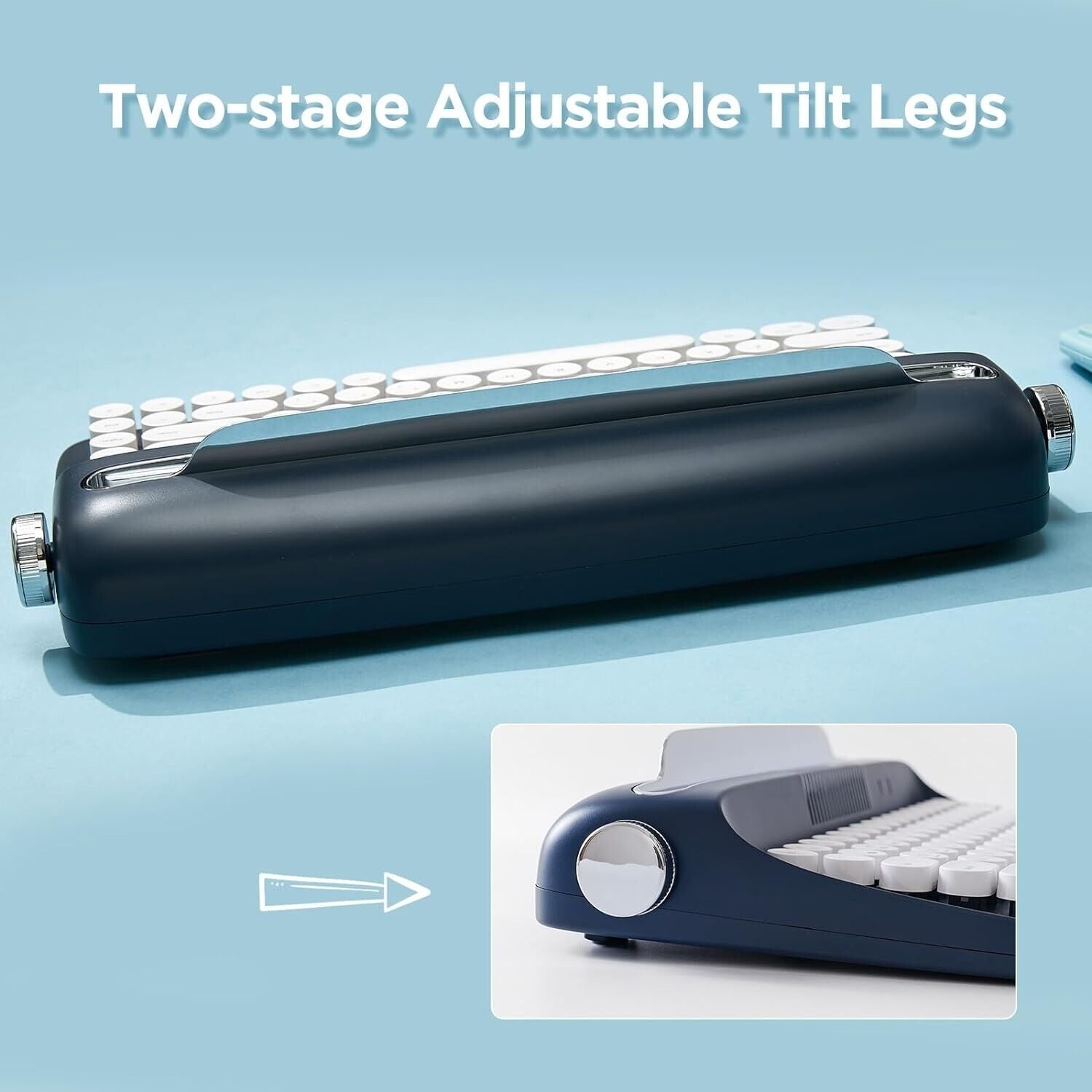 The wireless mini compact also includes adjustable feet, allowing you to set the angle for maximum comfort during long typing sessions. Enjoy a more enjoyable typing experience with this eye-catching typewriter.